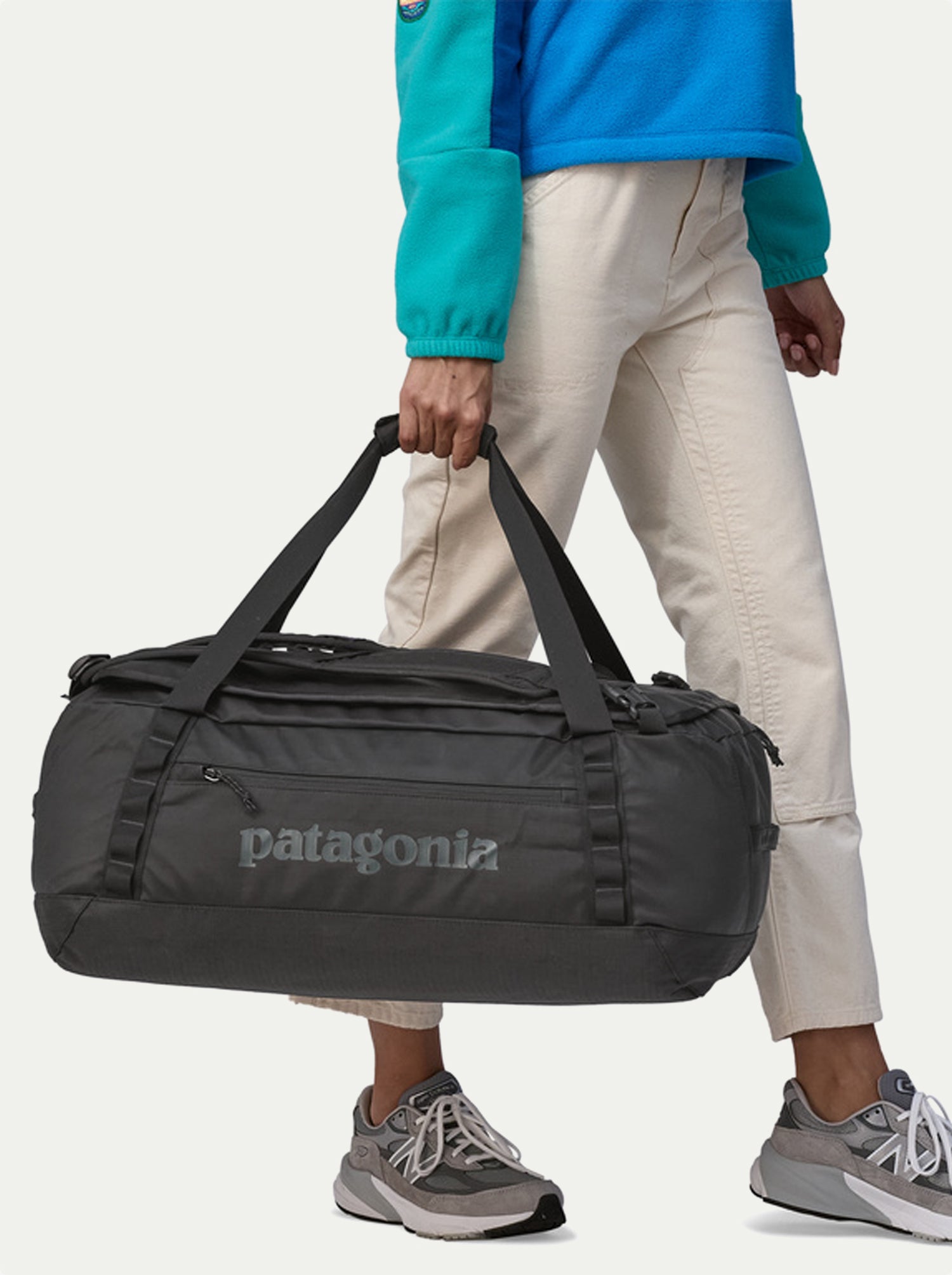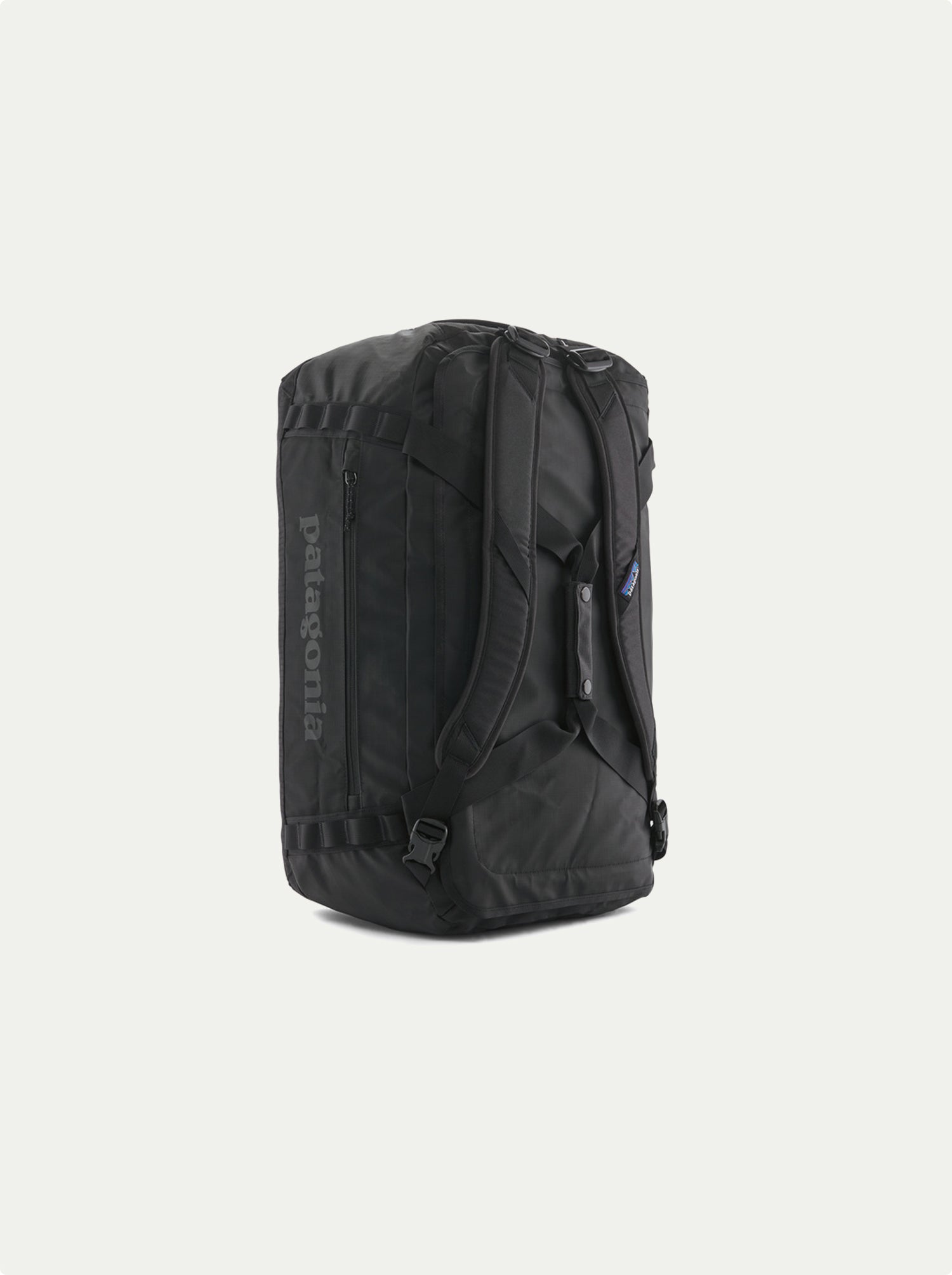 Details: Made from lightweight yet extremely durable, 100% recycled polyester ripstop with a TPU-film laminate to create a fabric that’s weather-resistant, abrasion-resistant and highly packable Body: 14-oz (prints: 14.8-oz) 900-denier 100% postconsumer recycled polyester ripstop with a TPU-film laminate Lining: 3-oz 200-denier 100% recycled polyester with a PU coating Padded, removable shoulder straps let you carry the Black Hole Duffel like a backpack and can be detached when not in use The reinforced haul handles withstand over-zealous baggage handlers The padded base protects the contents of the Black Hole Duffel from rough terrain and hard knocks The top zipper allows bag to open wide for quick access to the entire main compartment When empty, the duffel stuffs into its own pocket for compact, self-contained storage A zippered side pocket can be reached from the outside or inside of the bag A mesh interior lid pocket keeps essentials organized and close at hand The exterior daisy chains are sturdy and reinforced and provide myriad lashing options for extra gear
