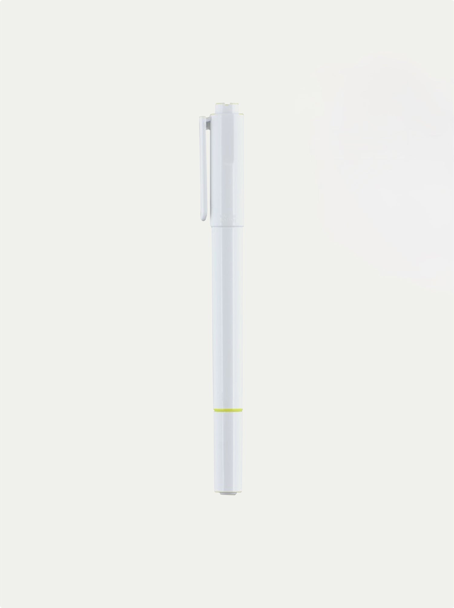 A 2-in-1 office solution that features the trusted name brand and quality of uni-ball with the convenience of an attached highlighter One side has a ball pen while the opposite end has a yellow, fluorescent ink highlighter