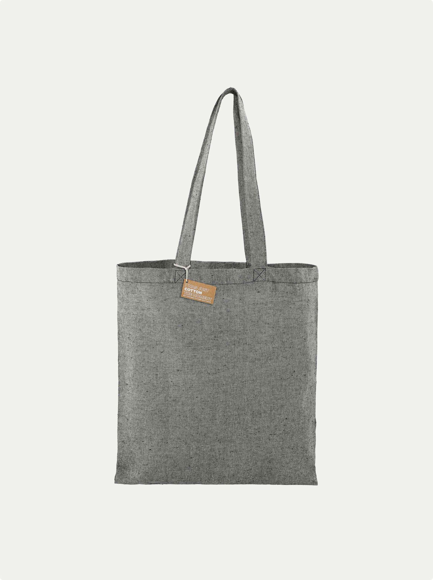 This recycled cotton twill tote promotes corporate social responsibility, made from factory pre-consumer waste. It contains approximately 70%-80% recycled cotton and 20-30% RPET. Sales contribute 1% to nonprofits protecting the planet through our partnership with 1% For The Planet.