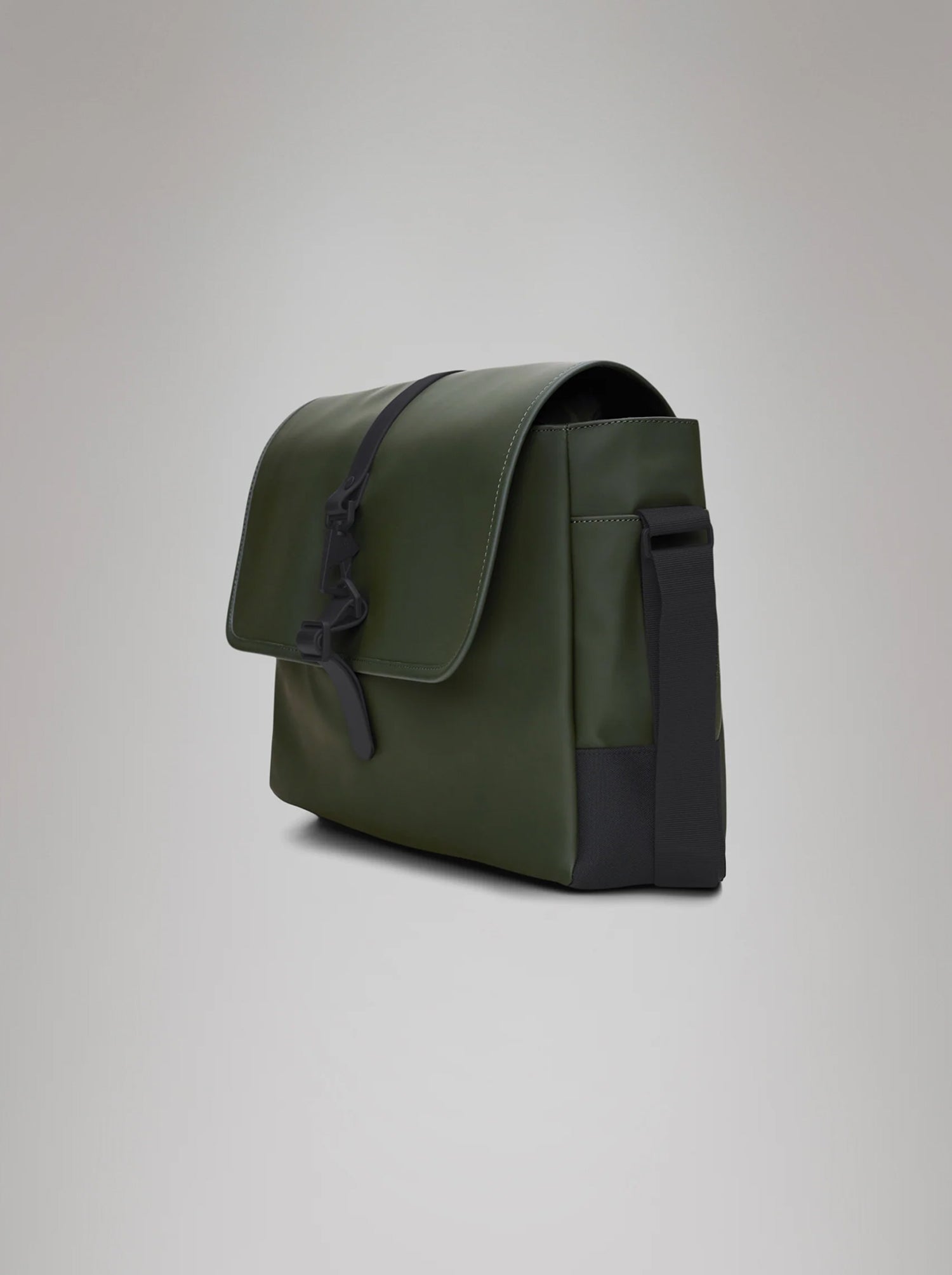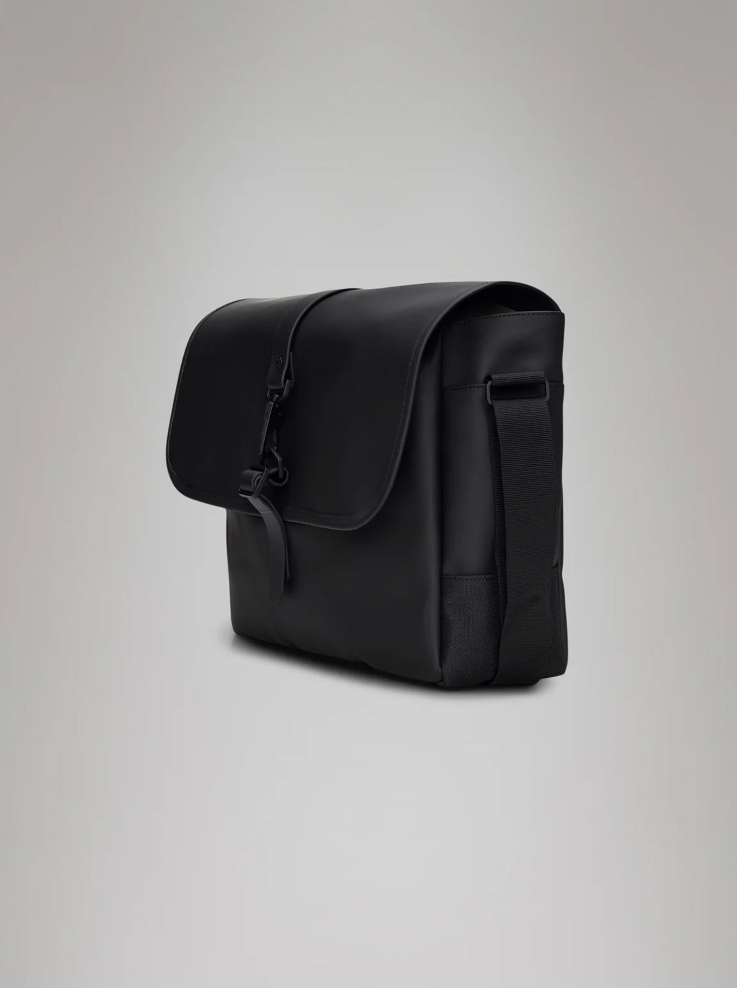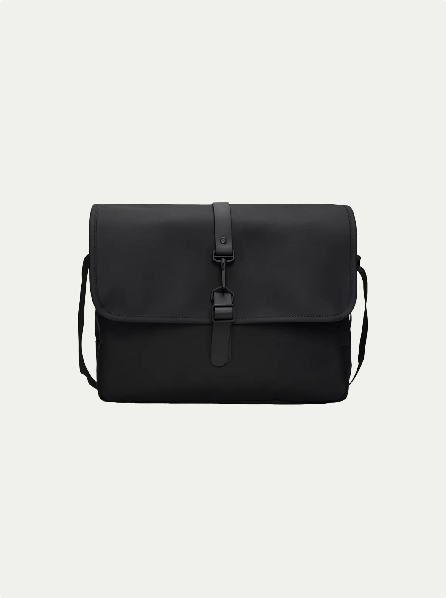 A dependable all-rounder, Rains' Messenger Bag pays homage to archetypal styles. It's strung on an adjustable shoulder strap and characterized by a flap closure which secures with a signature mountaineering-inspired carabiner. A worthwhile investment for students and professionals, it's sized to hold 15/16" laptops, and padded for protection. A discreet zipped pocket at the back comes in useful for daily commutes