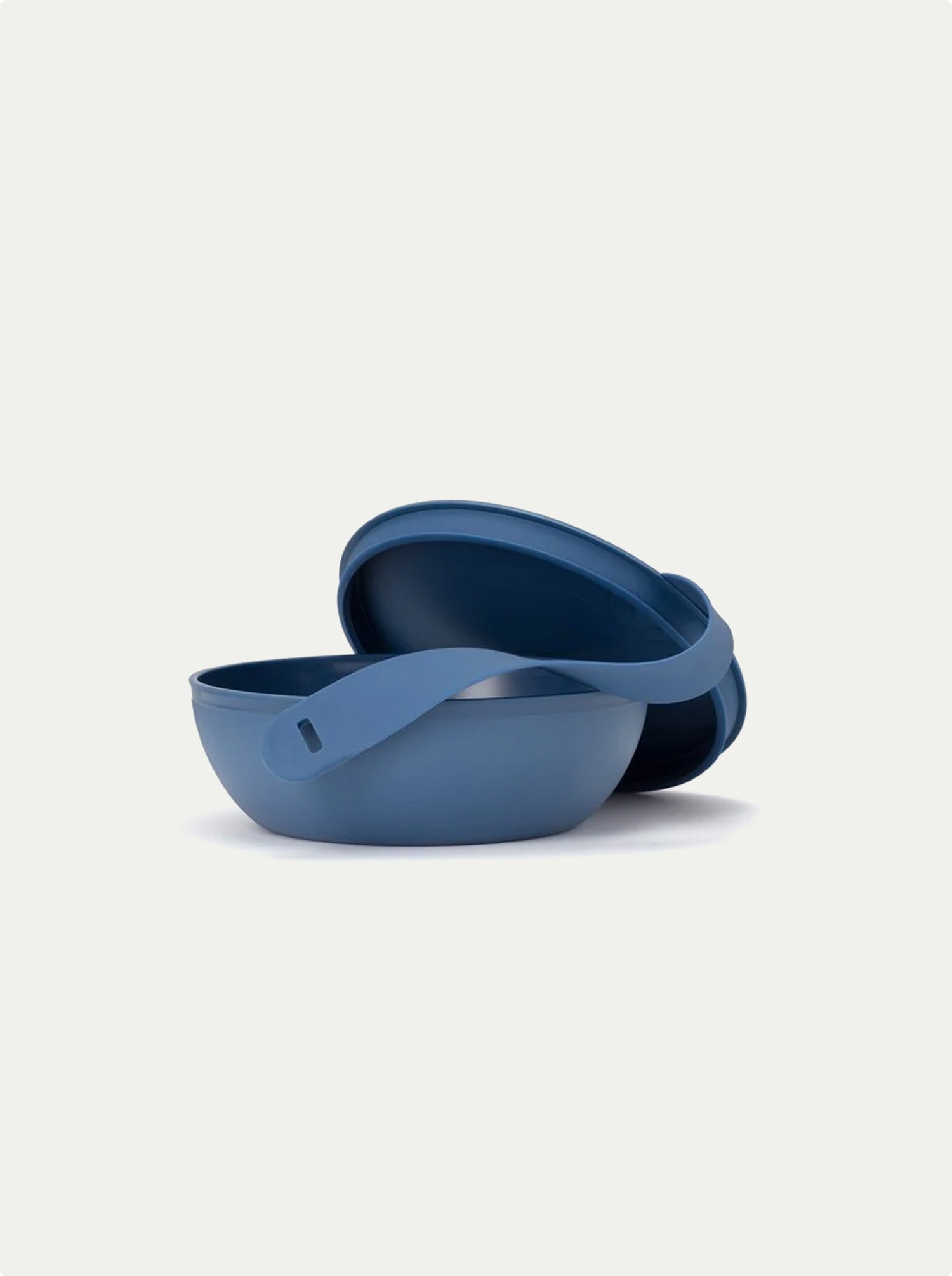 Roomy, one-liter capacity packs everything from big salads and grain bowls to pasta and veggies. Crafted from BPA-free plastic, the durable base is wrapped in the highest quality protective silicone with a silicone snap-strap to secure the lid. Makes meal prep and cleanup a breeze - throw it in the microwave, then rinse it out or toss it in the dishwasher. Designed to be carried upright as it's not leakproof .